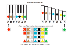 Figurenotes is perfectly suited to the piano. By placing stickers on the white notes, we make it much easier to see the repeating pattern of notes that the piano has. Each note has a colour and each octave has a shape. You can see the relationship between notes, while still seeing them as different. Match the note […]